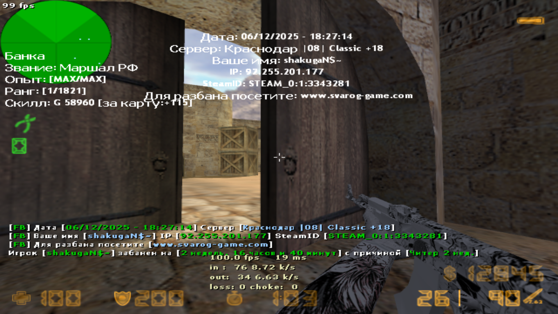 Kicked :"Вы забанены. Подробная информация в вашей консоли."