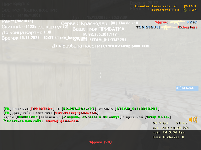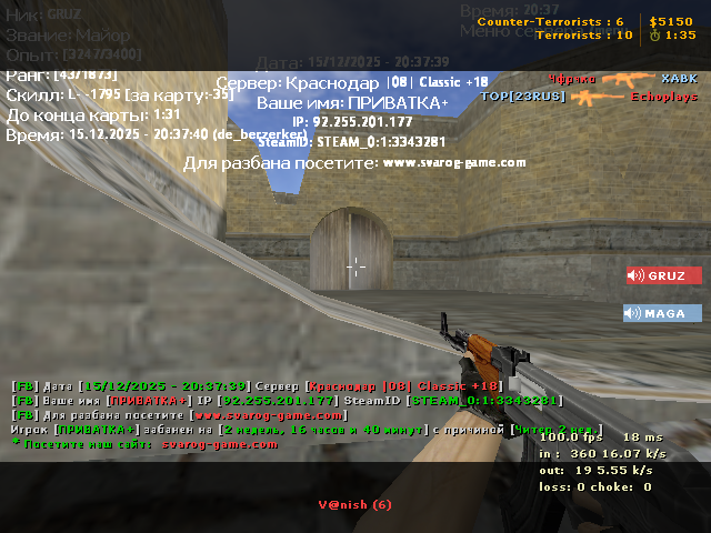 Kicked :"Вы забанены. Подробная информация в вашей консоли."
